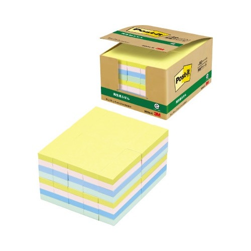大容量の通常粘着業務用パック製品です。オフィスでの買い置きにおすすめ。一言メモ、伝言メモ、見出しに便利なサイズ。資源の有効利用を考え、古紙パルプ配合率100%の再生紙を使用しています。