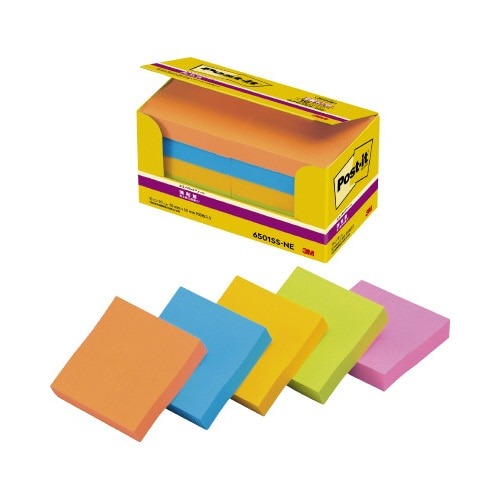 つきにくかった樹脂面にもしっかり貼れて、きれいにはがせる強粘着タイプのポストイット。手軽に使えて書き込みしやすい50mm角。たっぷり入ってお得なエコノパック。見落とし防止に役立つネオンカラー。