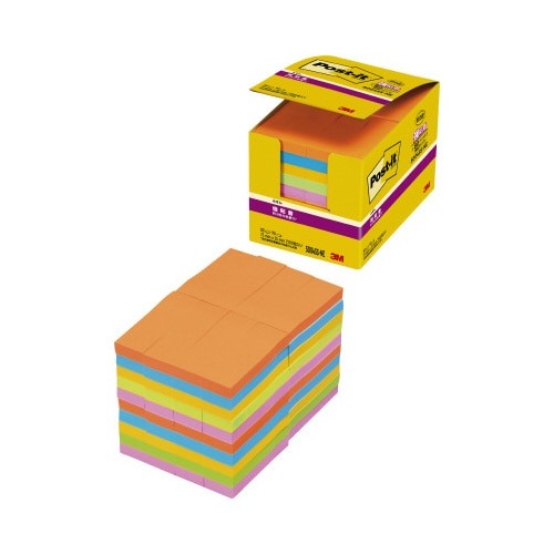 つきにくかった樹脂面にもしっかり貼れて、きれいにはがせる強粘着タイプのポストイット。一言メモ、伝言メモ、見出しにおすすめのサイズ。見落とし防止に役立つネオンカラー。