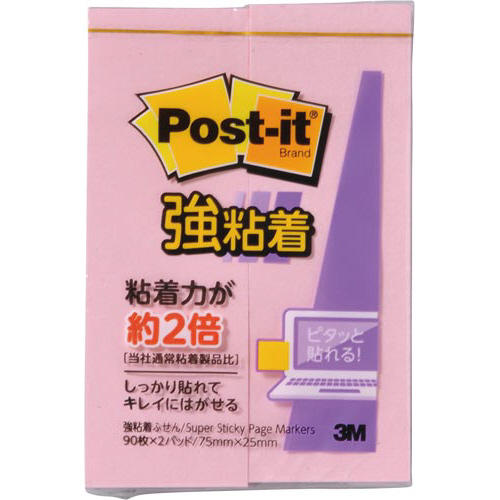 つきにくかった樹脂面にもしっかり貼れて、きれいにはがせる強粘着タイプのポストイット。一言メモ、伝言メモ、見出しにおすすめのサイズ。文字が見やすいパステルカラー。ピンク2冊。