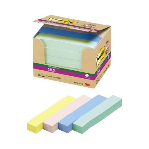 つきにくかった樹脂面にもしっかり貼れて、きれいにはがせる強粘着タイプのポストイット。一行メモ、見出しに便利なサイズ。文字が見やすいパステルカラー。たっぷり入ってお得な混色エコノパック。
