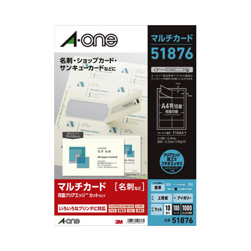 各種プリンタ兼用で印刷できる、上質紙素材の名刺用紙です。印刷後、台紙からはがすだけでフチがすっきりした名刺が作れます。落ち着いたアイボリー色。