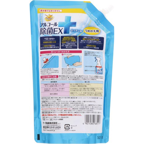 「らくハピアルコール除菌EX」専用の大容量つめかえです。食品成分100%で日本製のアルコール除菌スプレー。