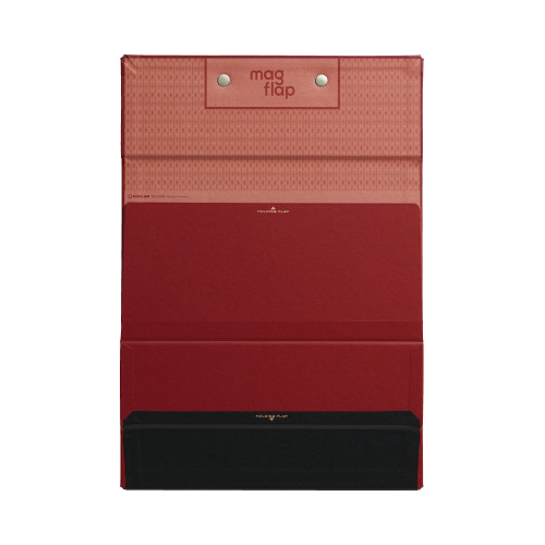 マグネットの力で書類をめくったまま固定できるクリップボード。立ちながらでも手で紙をおさえずに閲覧や書き込みができる「背面フラップ」、書類の不意なめくれを防ぐ「底面フラップ」など機能満載です。