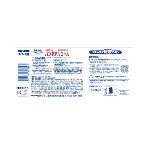 食品原料(食品・食品添加物)だけでつくられた手指のアルコール消毒剤。有効成分エタノール72.3w/w%。オフィス、幼稚園、介護施設などにおすすめ。ノズル付き。