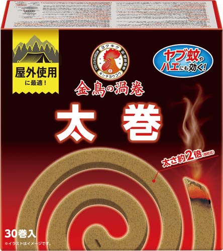 従来の線香の2倍の太さで拡散力2倍。ヤブ蚊だけでなく、ハエにも効きます。