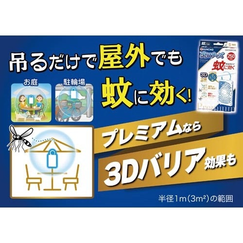吊るだけで蚊に効く、プレートタイプの簡単虫よけ。屋内への蚊の侵入阻止と、屋外で蚊を寄せ付けない二つの効果を発揮します。250日用無臭。
