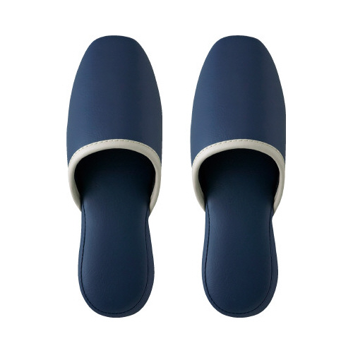 シンプルな抗菌加工のビニールスリッパ。履き口のラインがデザインのアクセント。底面かかと部分に滑り止め付き。