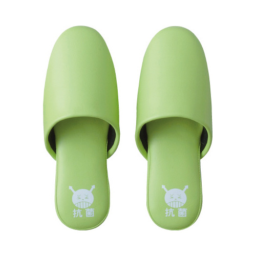 かわいいマークで抗菌仕様をお客様にアピール。底面かかと部分に滑り止め付き。