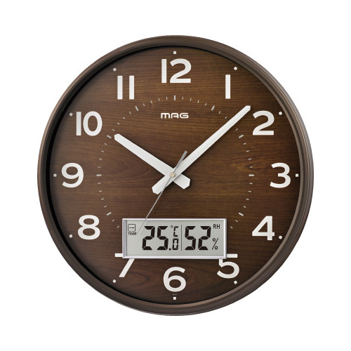 お部屋の環境管理に便利な温度湿度表示付掛時計