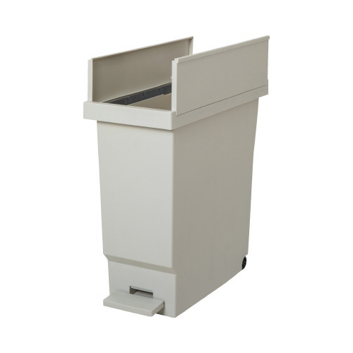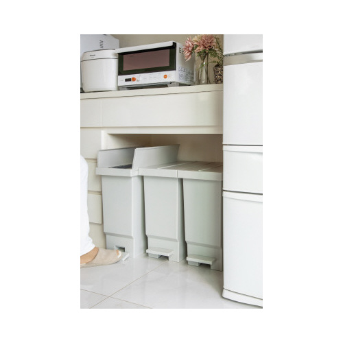 ラック下でもスッキリ収まる両開きペダルペール。本体後方キャスター付きなので、移動もラクラクです。袋留め付き、45Lポリ袋を固定できます。45Lのゴミ袋をご使用ください。