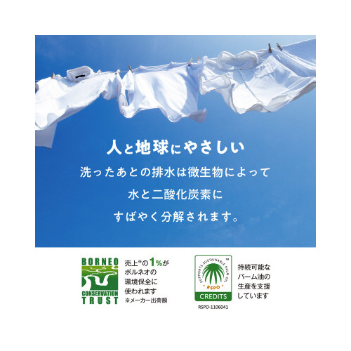 ヤシの実由来の洗浄成分で、高い洗浄力と肌へのやさしさを両立。無香料&無添加で子供の衣類にも安心してご使用頂ける洗たく洗剤です。