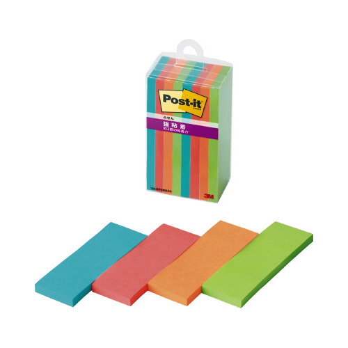 強粘着タイプのポストイット。保管しやすく、使いたい色がすぐに取り出せる収納ケースに入っています。想像力と効率を高める色(カレイドスコープ)4色セット。