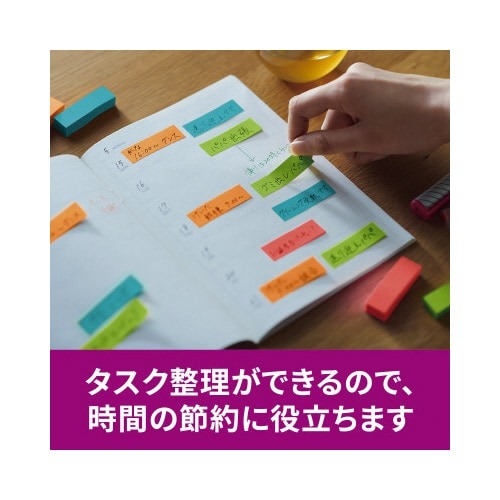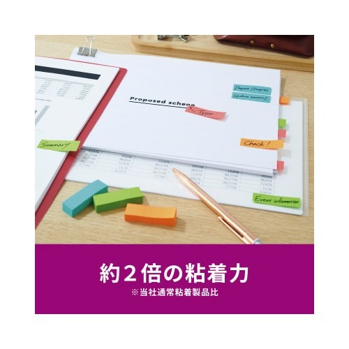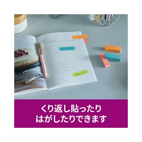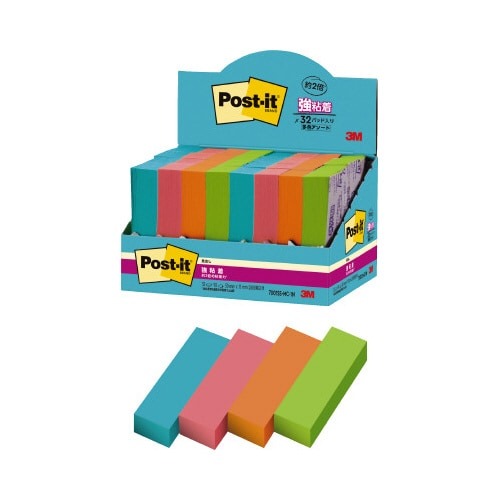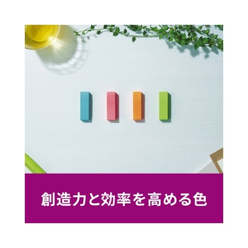 強粘着タイプのポストイット。保管しやすく、使いたい色がすぐに取り出せる収納ケースに入っています。想像力と効率を高める色(カレイドスコープ)4色セット。