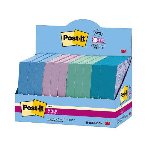 強粘着タイプのポストイット。保管しやすく、使いたい色がすぐに取り出せる収納ケースに入っています。心を落ち着かせる色(ブルーアワー)4色セット。