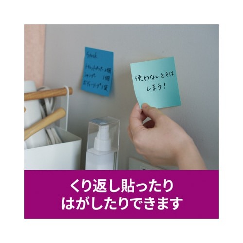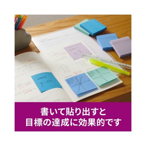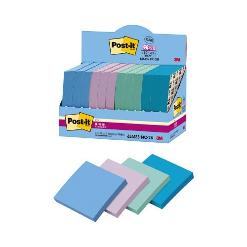 強粘着タイプのポストイット。保管しやすく、使いたい色がすぐに取り出せる収納ケースに入っています。心を落ち着かせる色(ブルーアワー)4色セット。