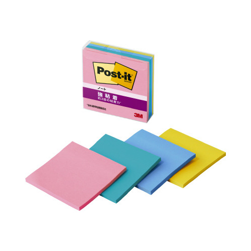 強粘着タイプのポストイット。保管しやすく、使いたい色がすぐに取り出せる収納ケースに入っています。気持ちを伝える色(フラワー)4色セット。