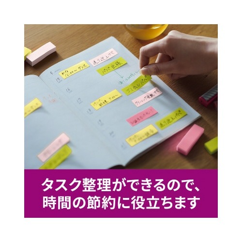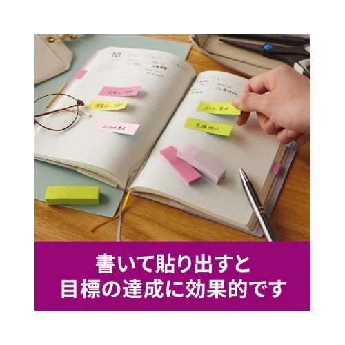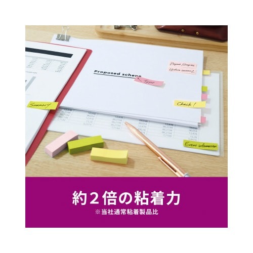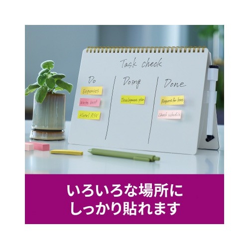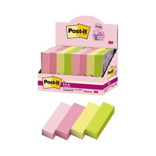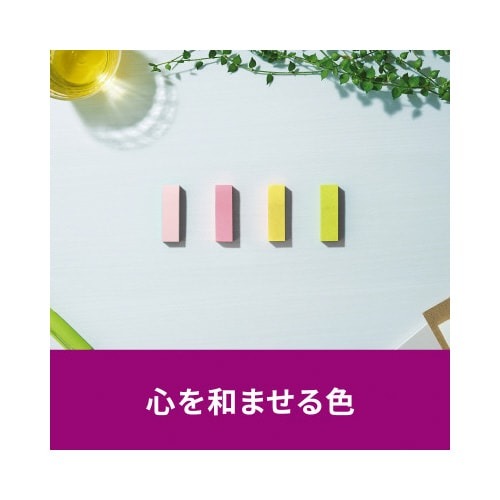 強粘着タイプのポストイット。保管しやすく、使いたい色がすぐに取り出せる収納ケースに入っています。気持ちを伝える色(サクラ)4色セット。