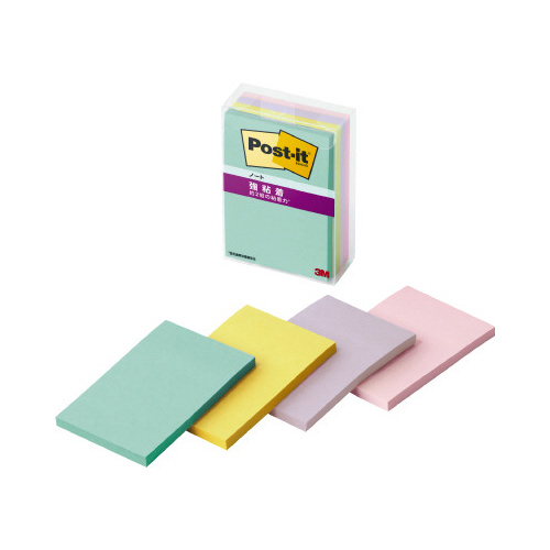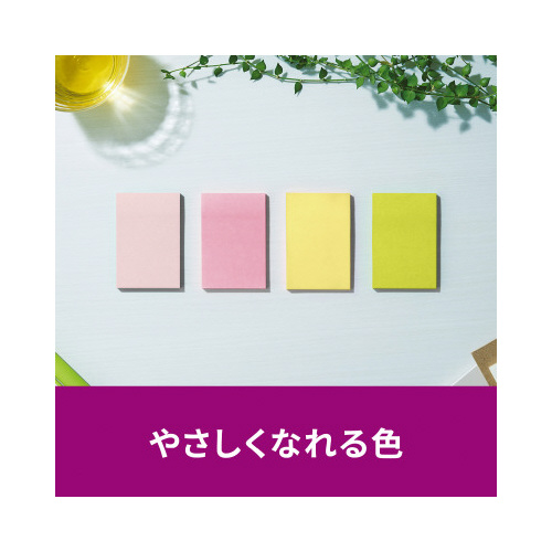 強粘着タイプのポストイット。保管しやすく、使いたい色がすぐに取り出せる収納ケースに入っています。やさしくなれる色(スイーツ)4色セット。