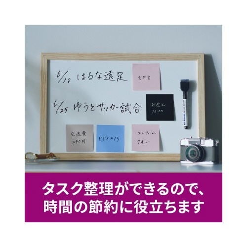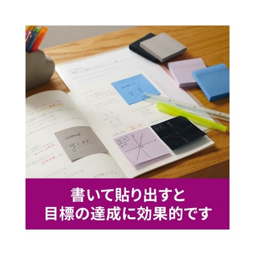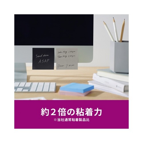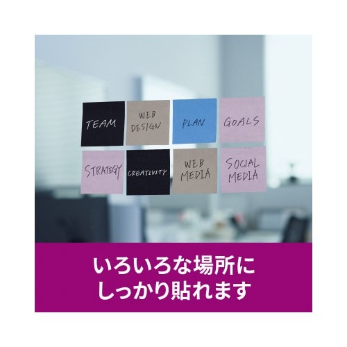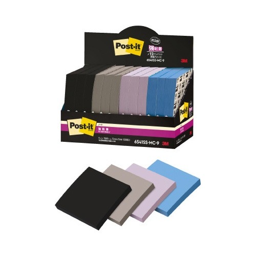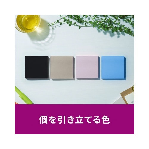 強粘着タイプのポストイット。保管しやすく、使いたい色がすぐに取り出せる収納ケースに入っています。個を引き立てる色(ギャラクシー)4色セット。