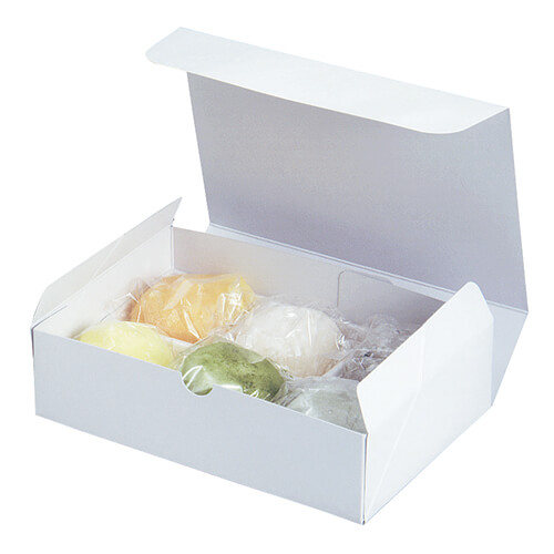 サイズが112×164×45mmのお菓子向けギフトパッケージ。大福6個にちょうど良い大きさとなっています。和菓子類のパッケージ、ギフト包装にいかがでしょうか。