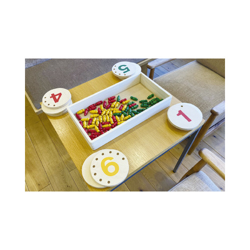 手先の巧緻性を養える差し込みペグゲームセット。色と数字の認知トレーニングも行えます。レクリエーションガイドカード付き。