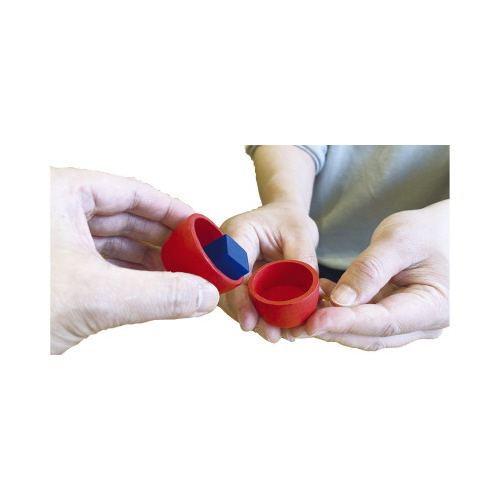 カップを開けて形合わせ遊び!同じ色と形のピースを見つけよう!色と形の認識、記憶力トレーニングが遊びを通じて行えます。レクリエーションガイドカード付き。