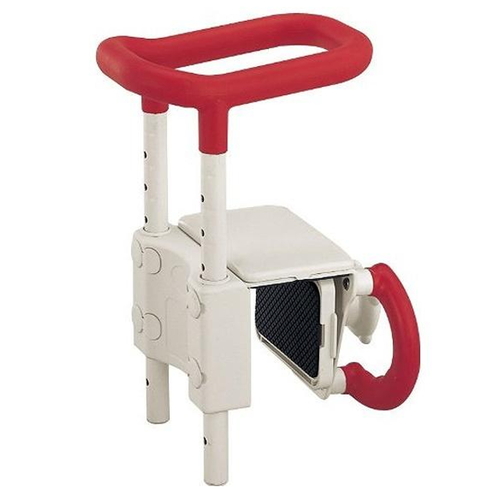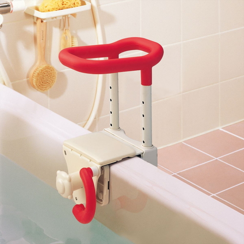 ●手すりを両手で握ると安定してまたげるので、 浴槽台に座るのも簡単になります。