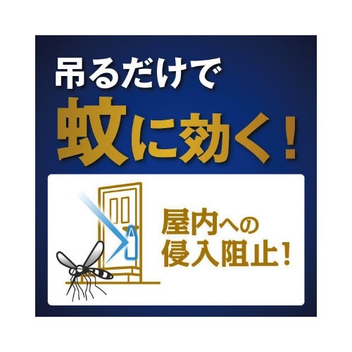 玄関ドアに吊るしたり、屋外設置するだけ簡単蚊対策!<吊るだけで蚊に効く!2つの効果>1.屋内への蚊の侵入阻止。出入口に設置するだけ。2.屋外で蚊を寄せつけない。〔半径1mの範囲〕屋外に設置するだけ。