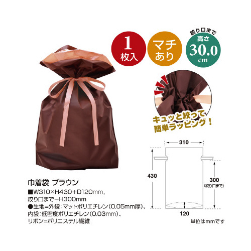 巾着袋 ブラウン 310×430+120 1P