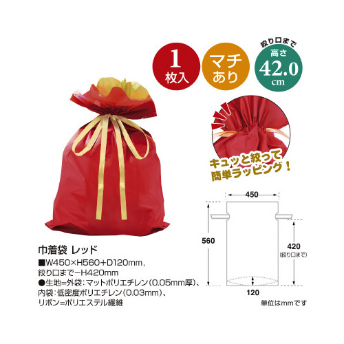 ●材質/生地=外袋:マットポリエチレン(0.05mm厚)、内袋:低密度ポリエチレン(0.03mm厚),リボン=ポリエステル繊維