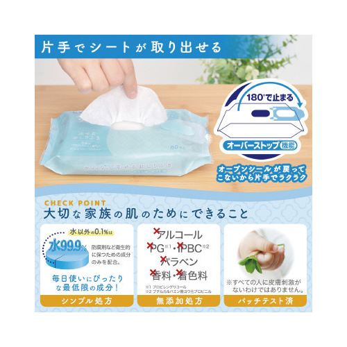 介護用トイレに流せるおしりふきです。ノンアルコール、パラベンフリー、無香料、弱酸性。大人だけでなくお子様にも使える、お肌にやさしい弱酸性ですお風呂に入れないキャンプや防災、ケガや病気の時の備えにも。