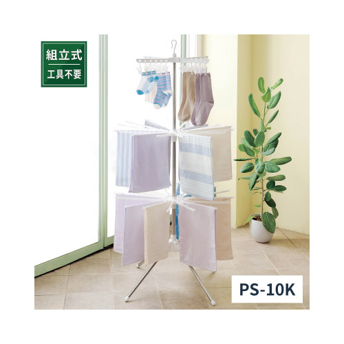 安定性バツグンの4本脚設計。上段と下段のパラソル位置を調節でき、洗濯物同士の干渉を防ぎます。上部ピンチハンガーは取り外して単独でも使用できます。