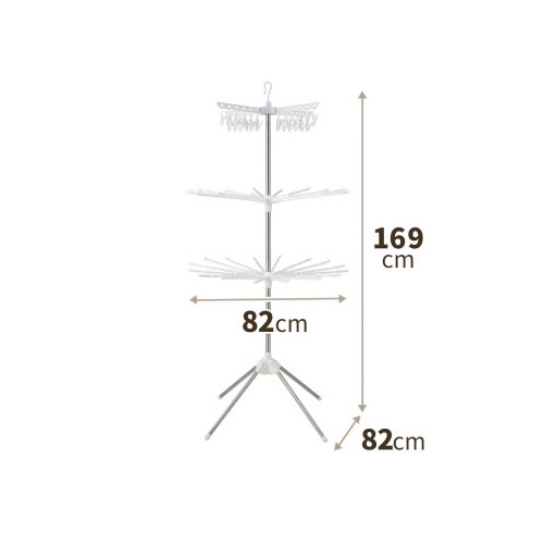 安定性バツグンの4本脚設計。上段と下段のパラソル位置を調節でき、洗濯物同士の干渉を防ぎます。上部ピンチハンガーは取り外して単独でも使用できます。