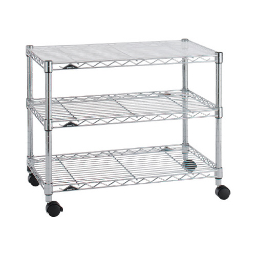 ●材質/ポール・シェルフ:スチール(クロームメッキクリアコーティング仕上げ)、トップボード:アクリル板、キャスター:ナイロン樹脂