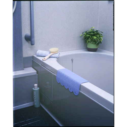 ●浴槽の上部フチに敷くだけで、出入りの際に手が滑るのを防ぎます。