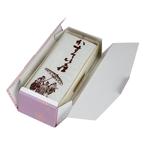 サイズが95×257×64mmのお菓子向けギフトパッケージ。和菓子にちょうど良い大きさとなっています。和菓子のギフトパッケージにいかがでしょうか。