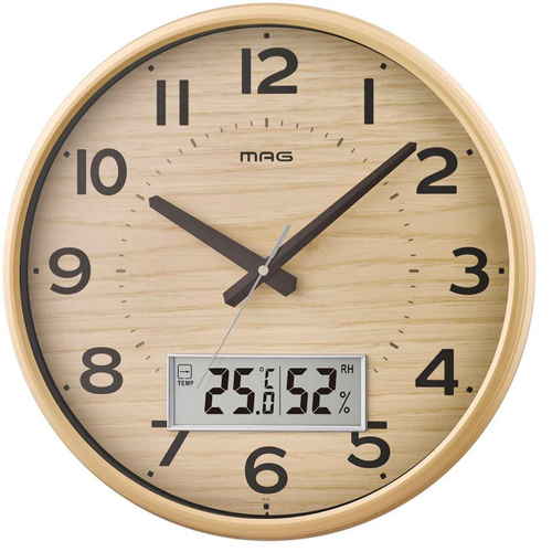 掛け時計 デジアナ 電波 ゴーフル 温度計 湿度計 アナログ ナチュラル