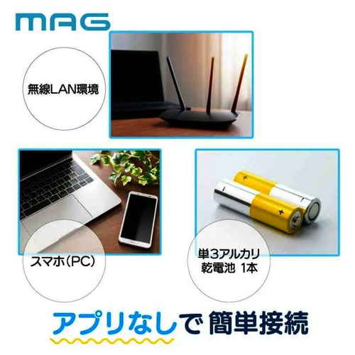 ●専用アプリ不要で簡単に接続でき、乾電池駆動のため設置場所を選ばず使えます。