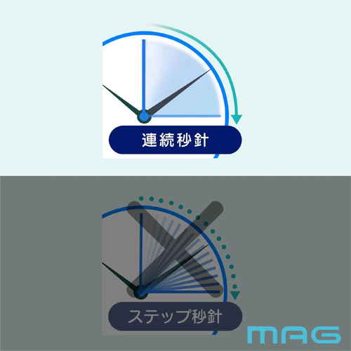 ●カチカチ音のしない静かな連続秒針を採用しています。