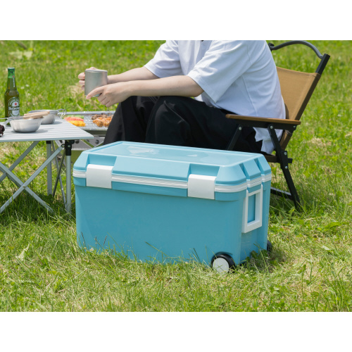 ホイール付きで移動が楽な大型クーラーボックスです。(46L)水抜栓付きで排水時に便利です。500mlペットボトルなら28本、2Lペットボトルなら15本収納可能です。