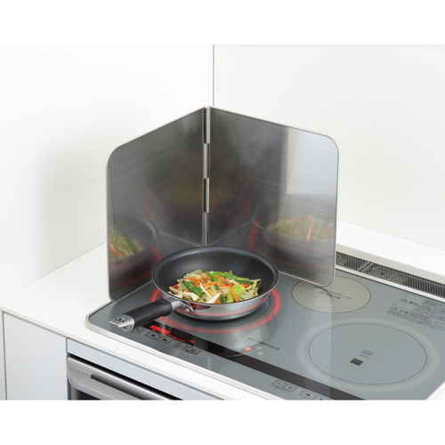 ●油はねの気になる調理の時だけ、サッと出して使えるオールステンレス製のレンジガードです。