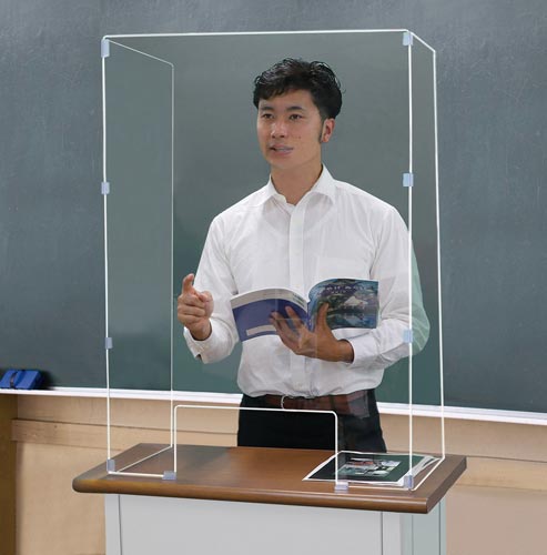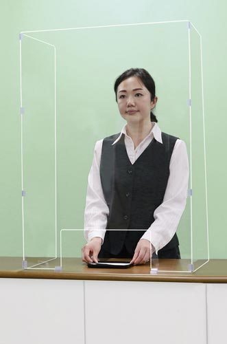 高さ900mmあるので立ったまま使えて、カウンター用受け渡し口付き。けが防止のため角を丸く加工されています。アルコール消毒や洗剤ふき取りにも対応。