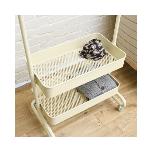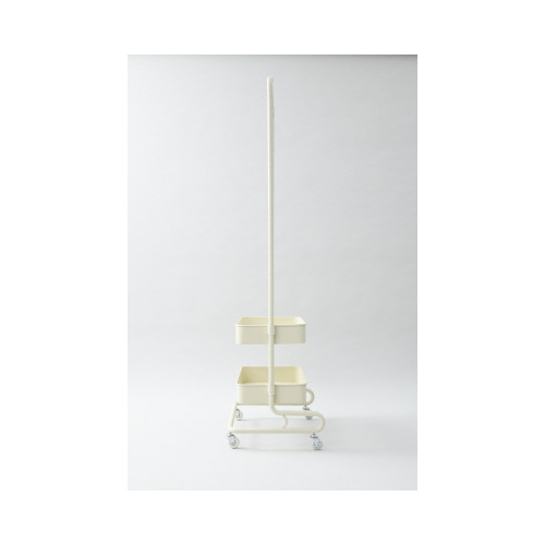 3段階(1370・1635・1890mm)高さ調整可能、ストッパー付きで移動も固定も簡単なハンガータイプ。バスケットが2つあるからバッグやランドセルなど収納可能