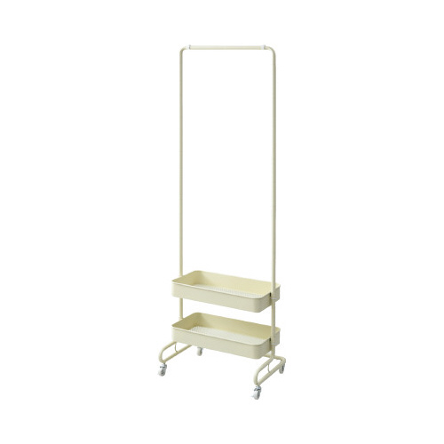 3段階(1370・1635・1890mm)高さ調整可能、ストッパー付きで移動も固定も簡単なハンガータイプ。バスケットが2つあるからバッグやランドセルなど収納可能