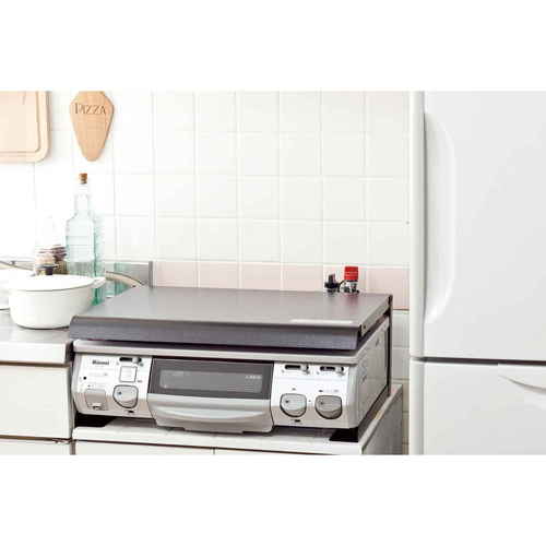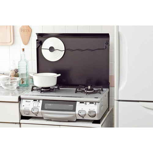 ●コンロを使わない時はフタをして調理スペース、使用時は油ハネガードになります。