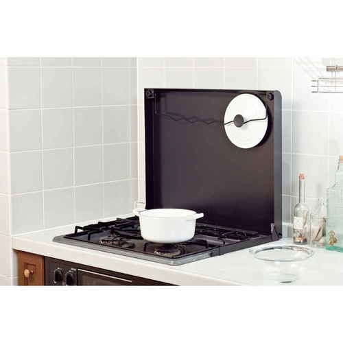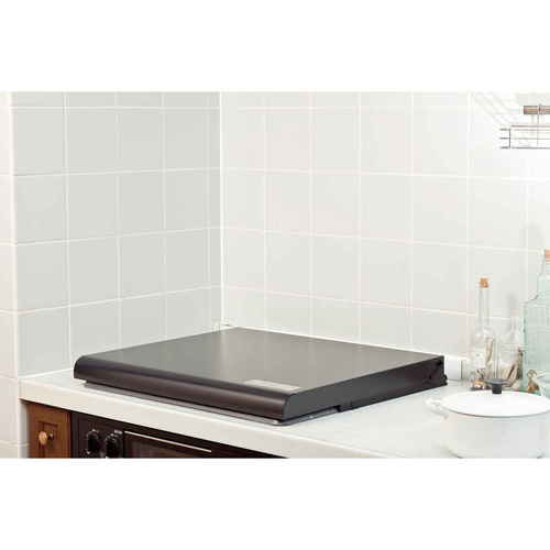 ●コンロを使わない時はフタをして調理スペース、使用時は油ハネガードになります。