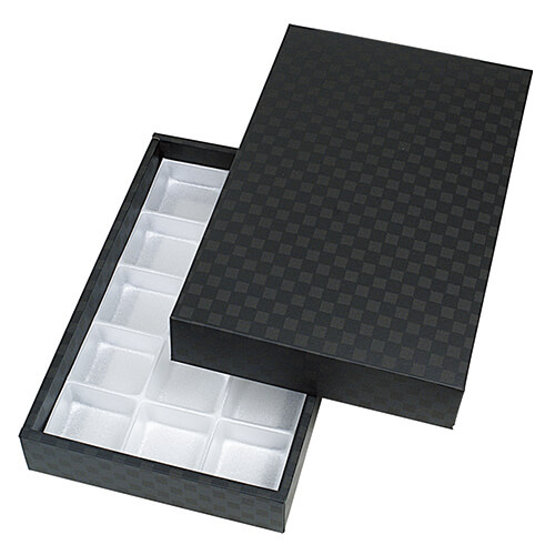 サイズが169×275×42(フタ197×305×45)mmのお菓子向けギフトパッケージ。まんじゅうなどの和菓子15個にちょうど良い大きさとなっています。和菓子類のパッケージ、ギフト包装にいかがでしょうか。