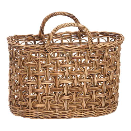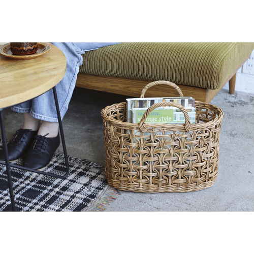 ●天然素材の皮付きラタンを贅沢に使用した、温かみのあるハンドルバスケットです。