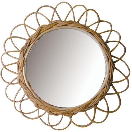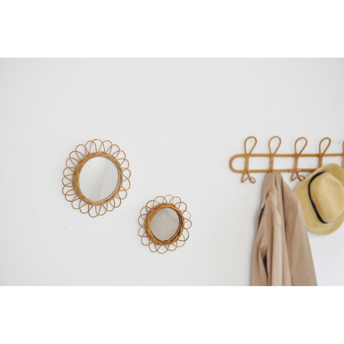 ●ヨーロッパのアンティークデザインを思わせる風合い豊かなラタン製のフラワーミラーLサイズです。